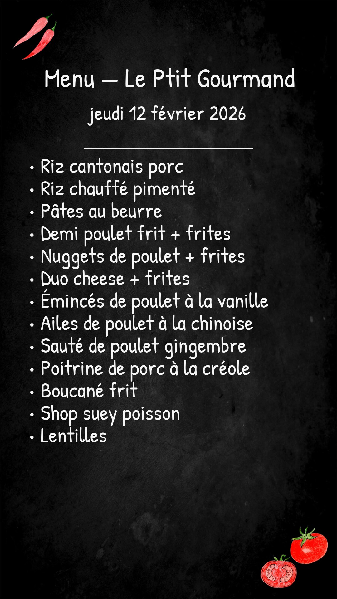 *Des modifications sont susceptibles d’être apportées au menu.
