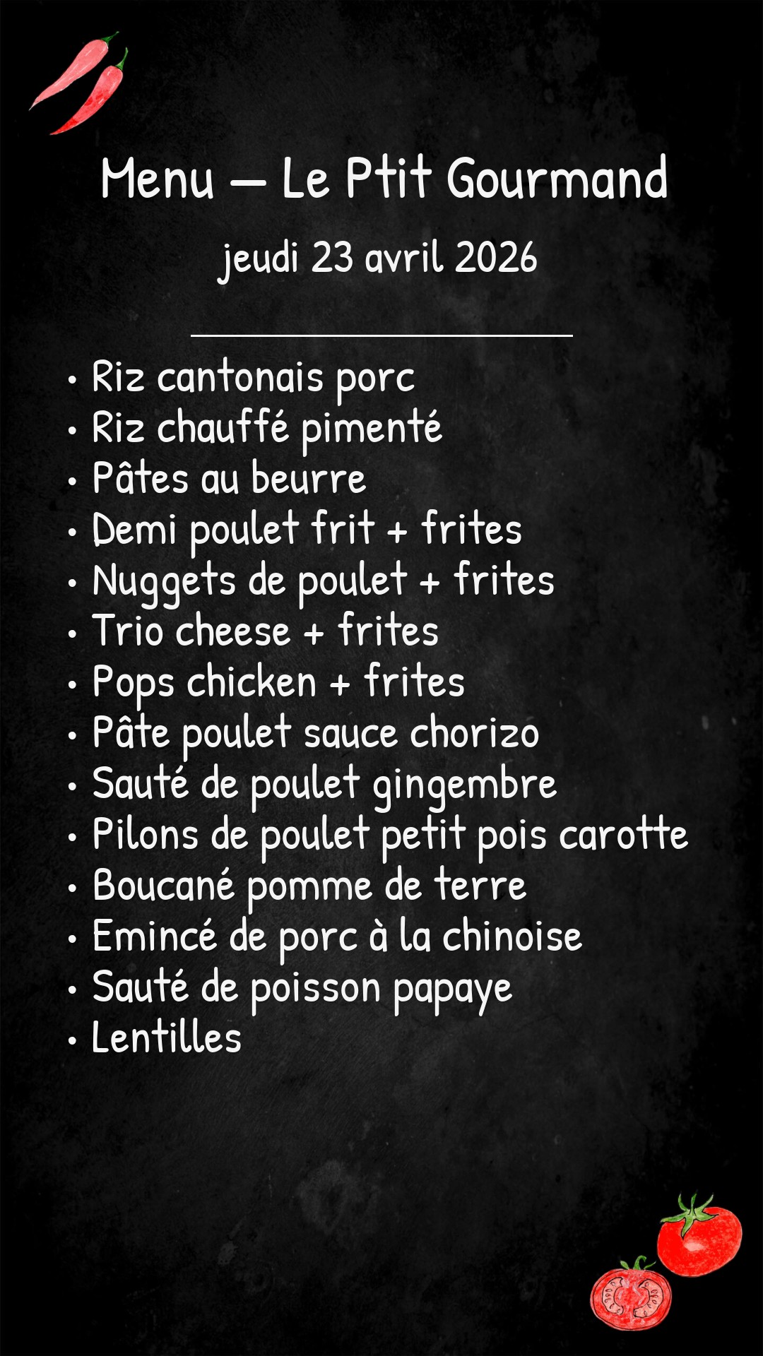 *Des modifications sont susceptibles d’être apportées au menu.