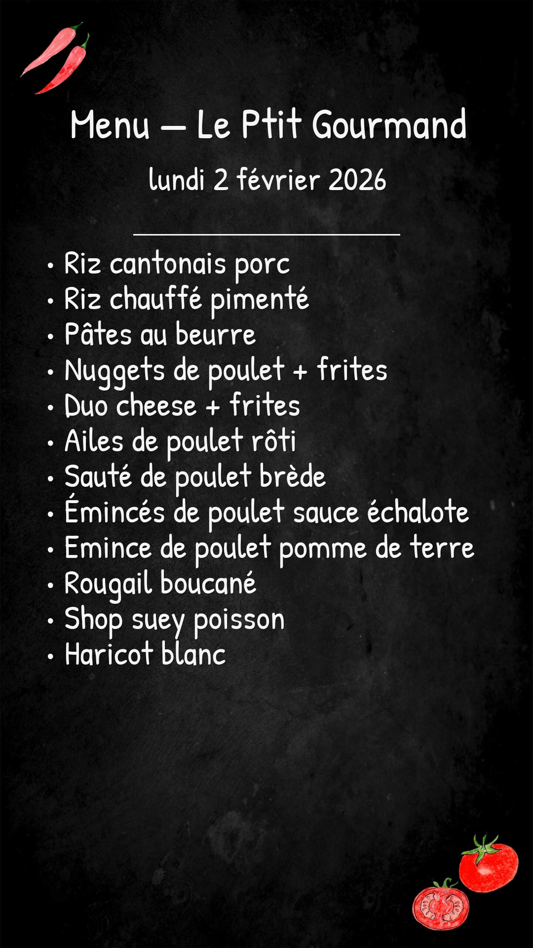 *Des modifications sont susceptibles d’être apportées au menu.