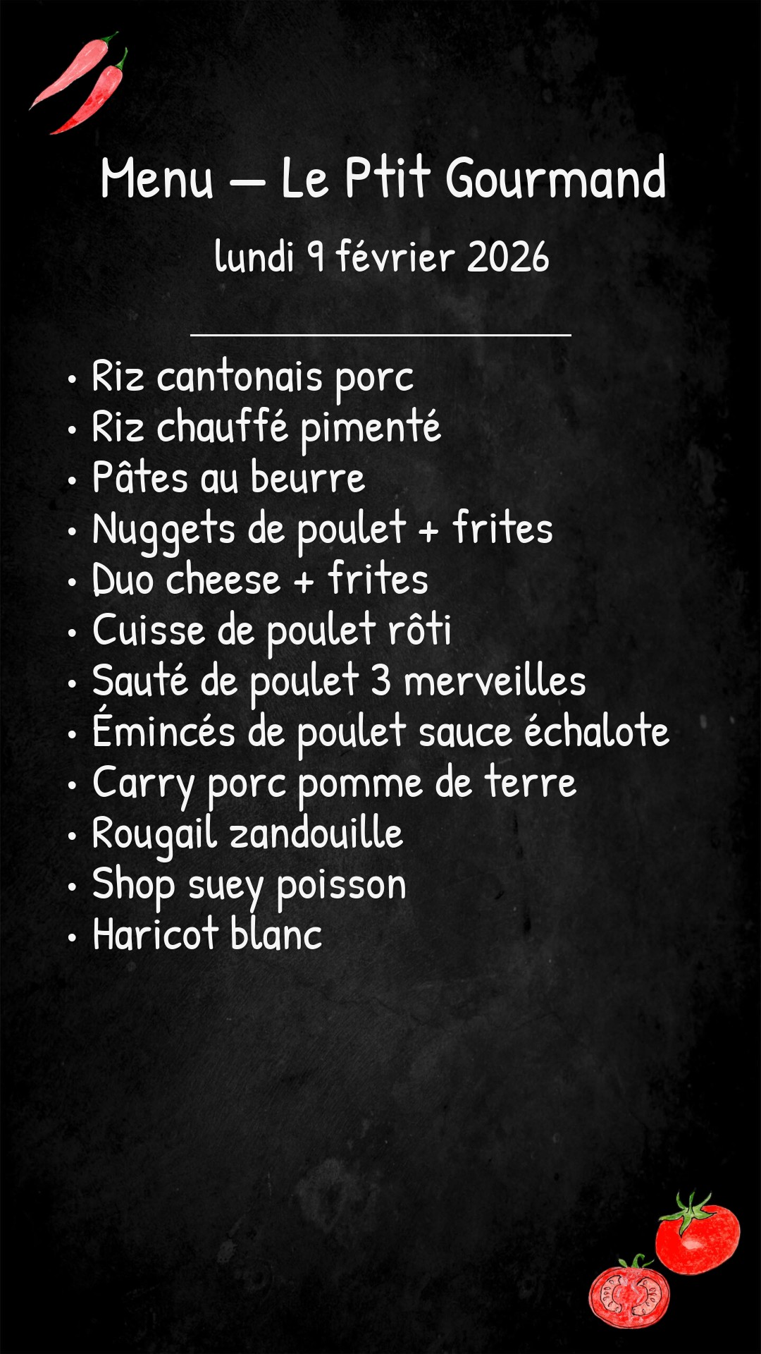 *Des modifications sont susceptibles d’être apportées au menu.