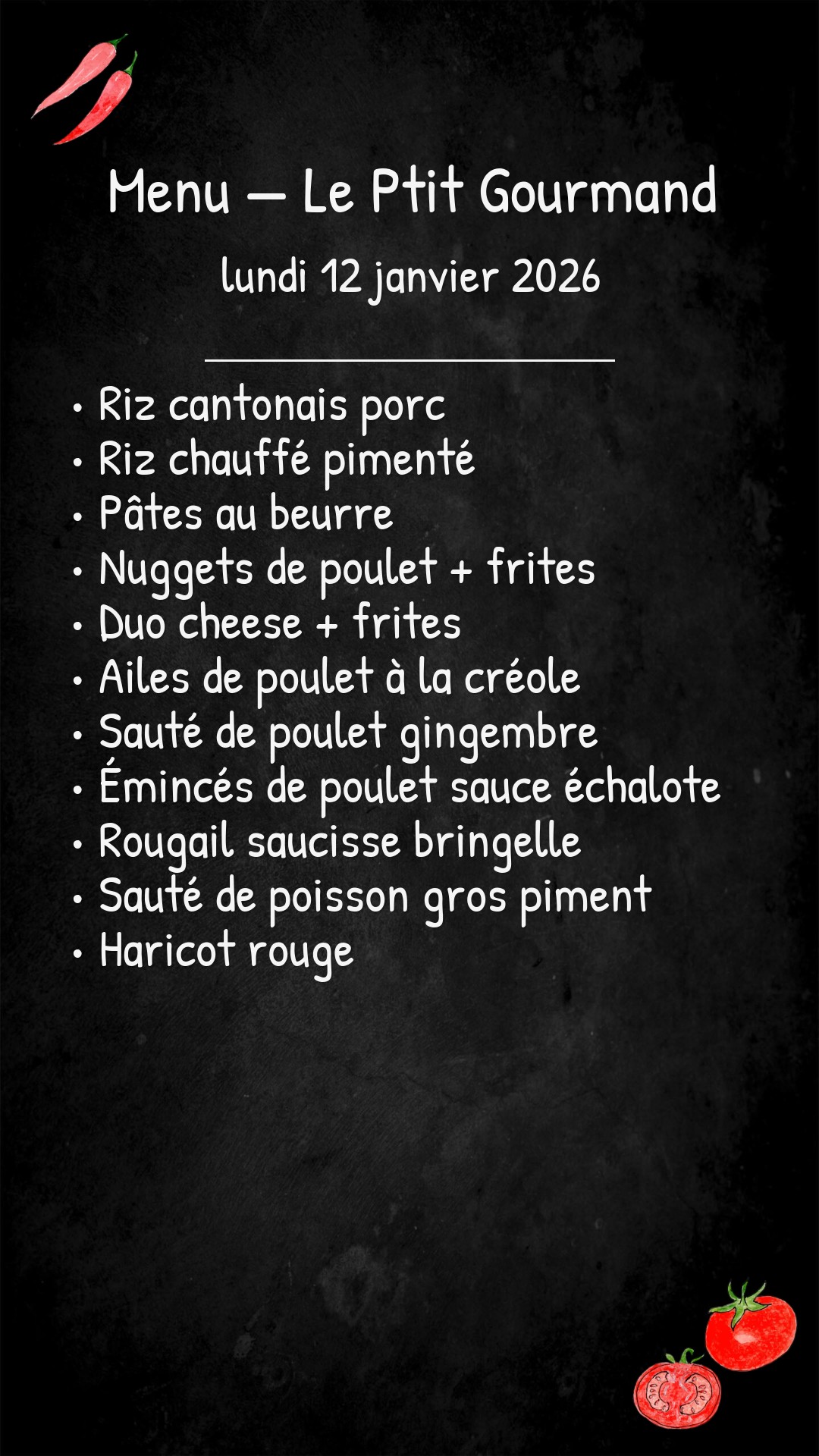 *Des modifications sont susceptibles d’être apportées au menu.