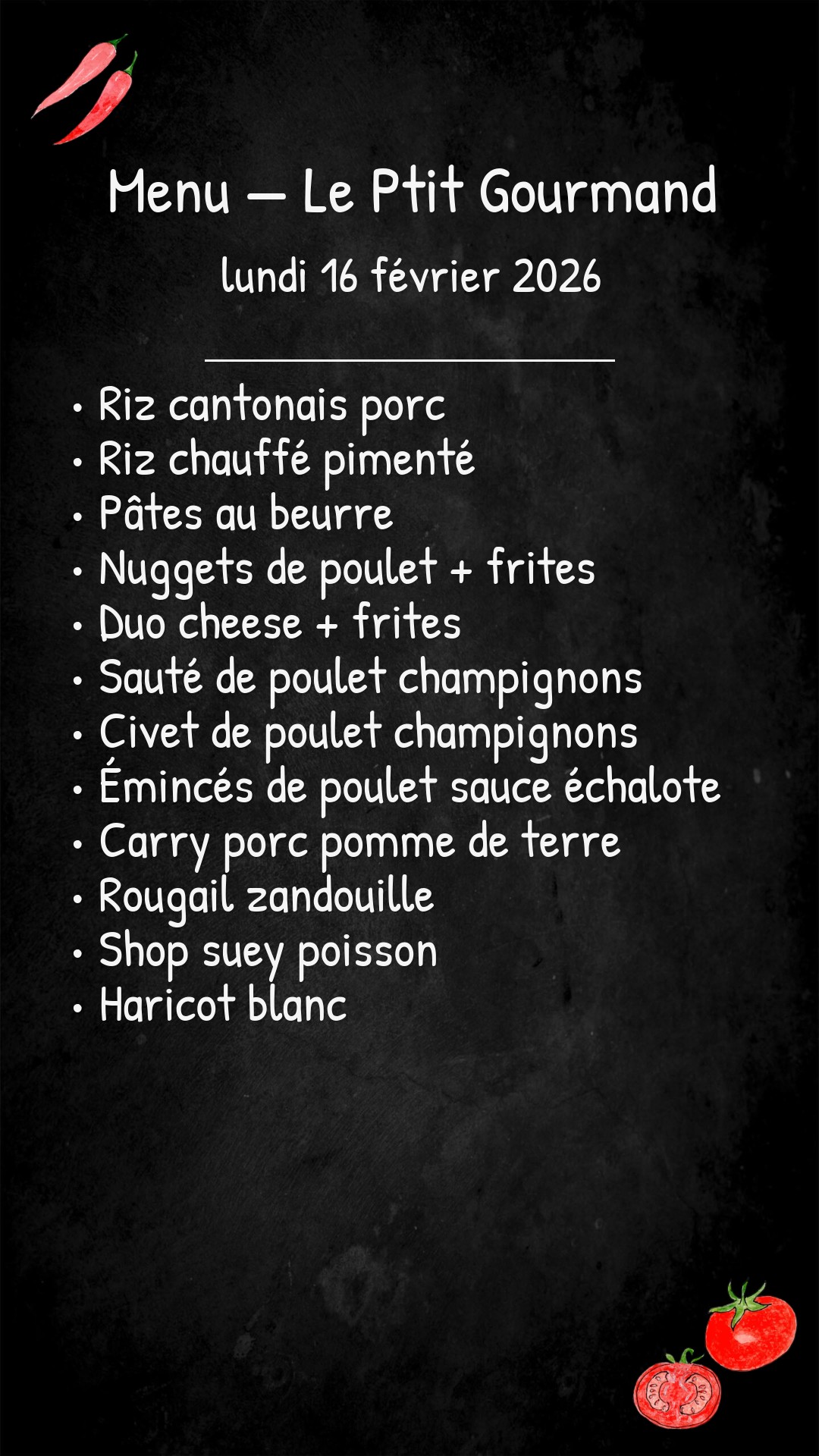 *Des modifications sont susceptibles d’être apportées au menu.