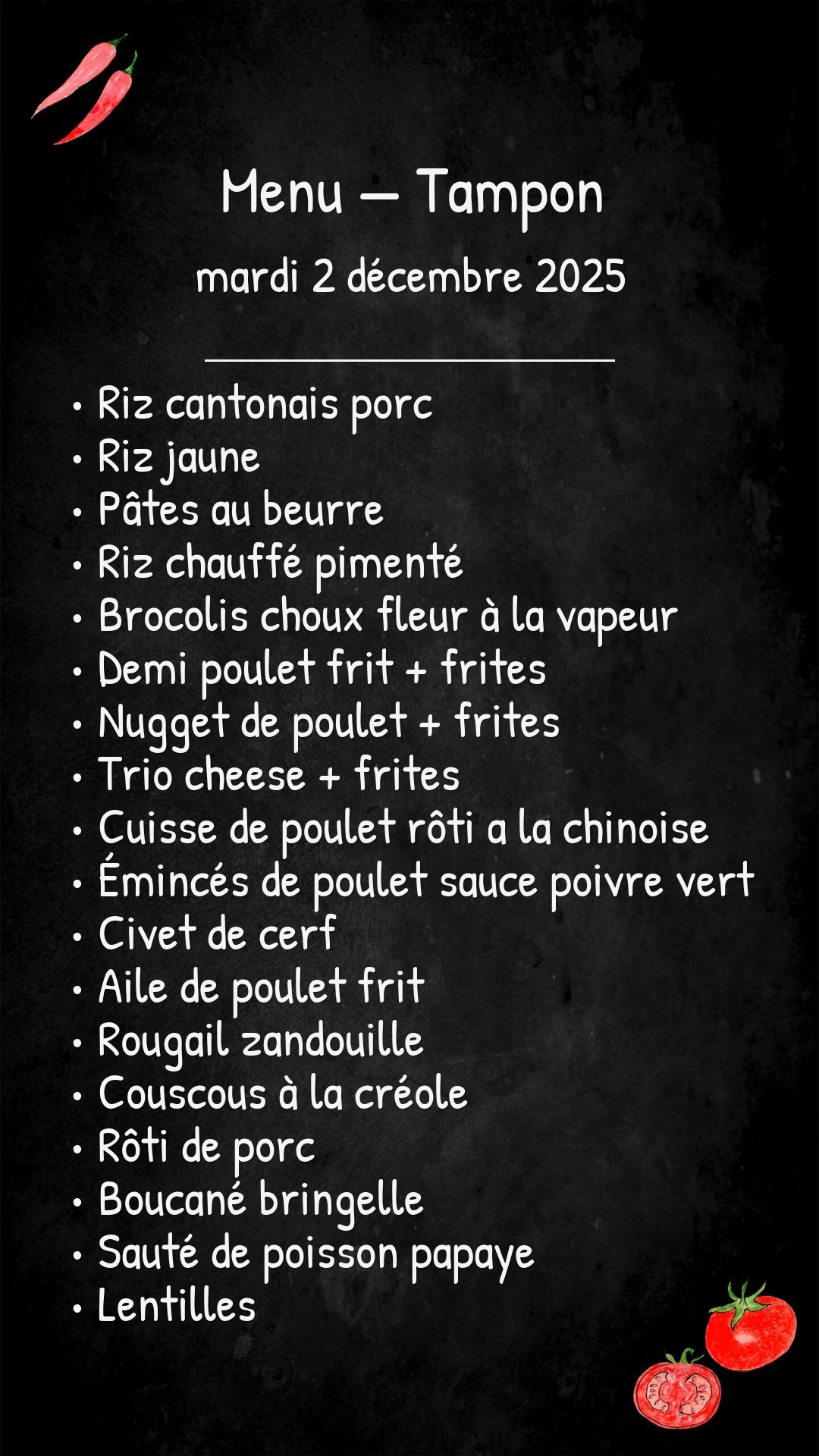 *Des modifications sont susceptibles d’être apportées au menu.