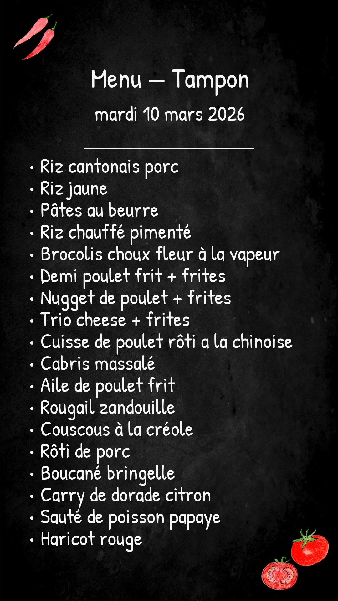 *Des modifications sont susceptibles d’être apportées au menu.