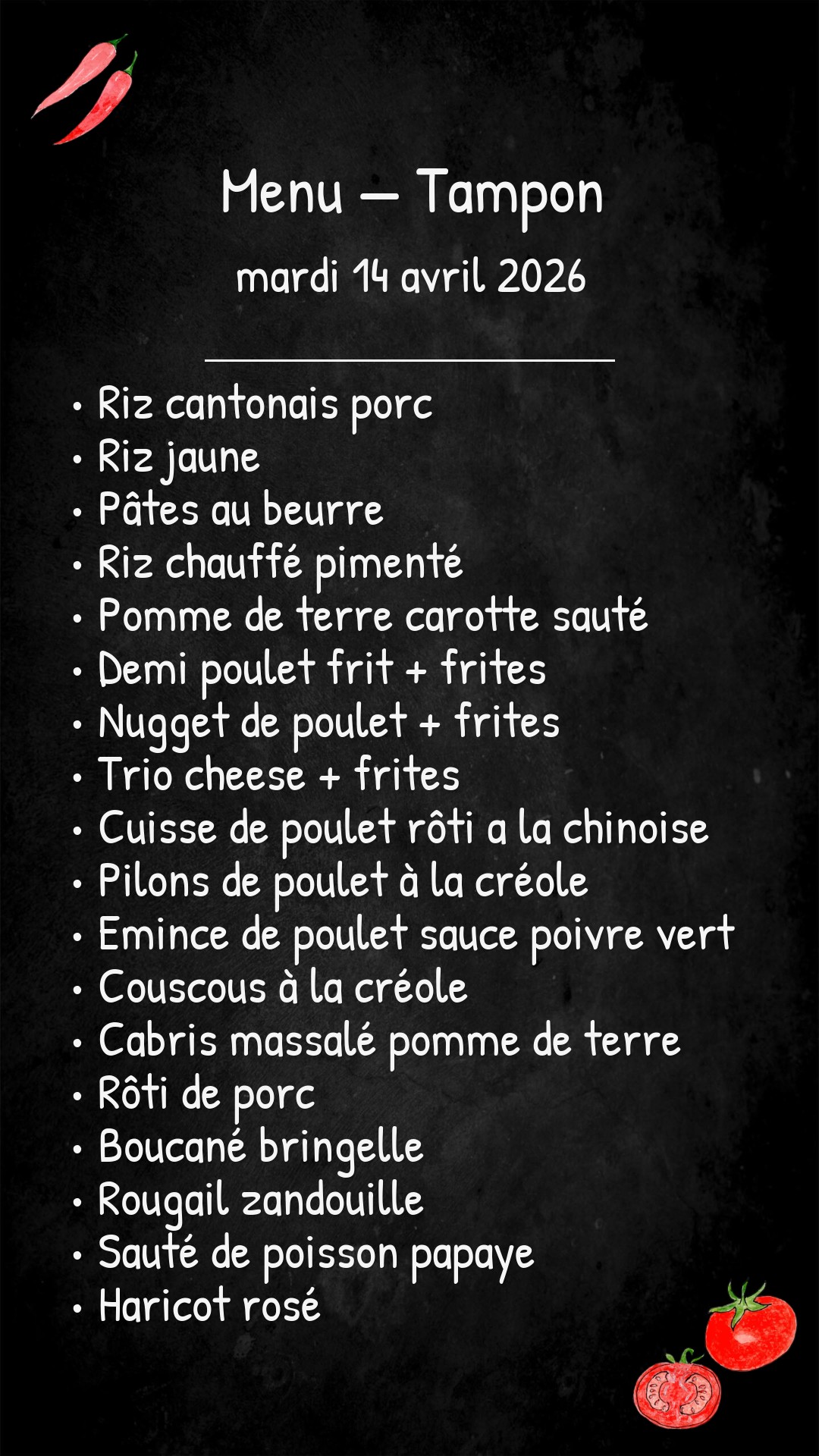 *Des modifications sont susceptibles d’être apportées au menu.