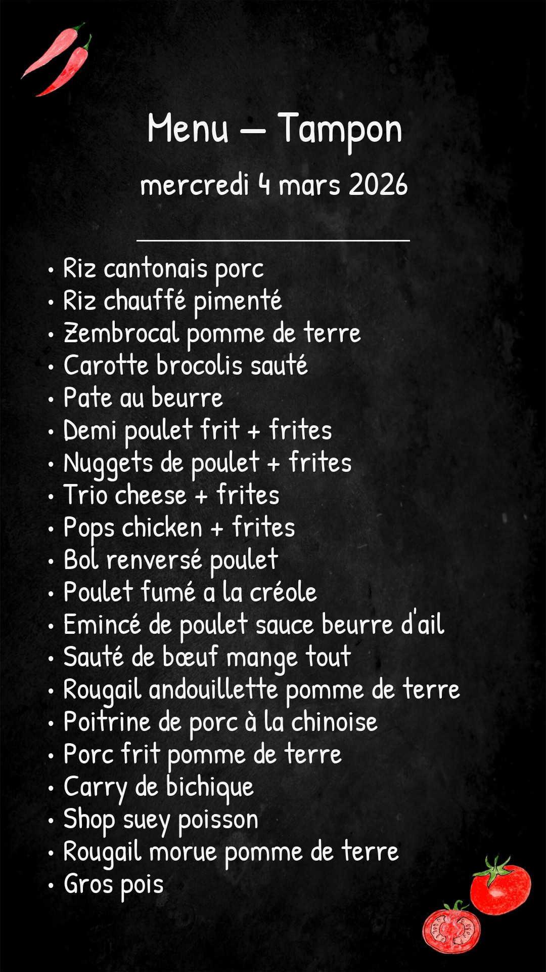 *Des modifications sont susceptibles d’être apportées au menu.