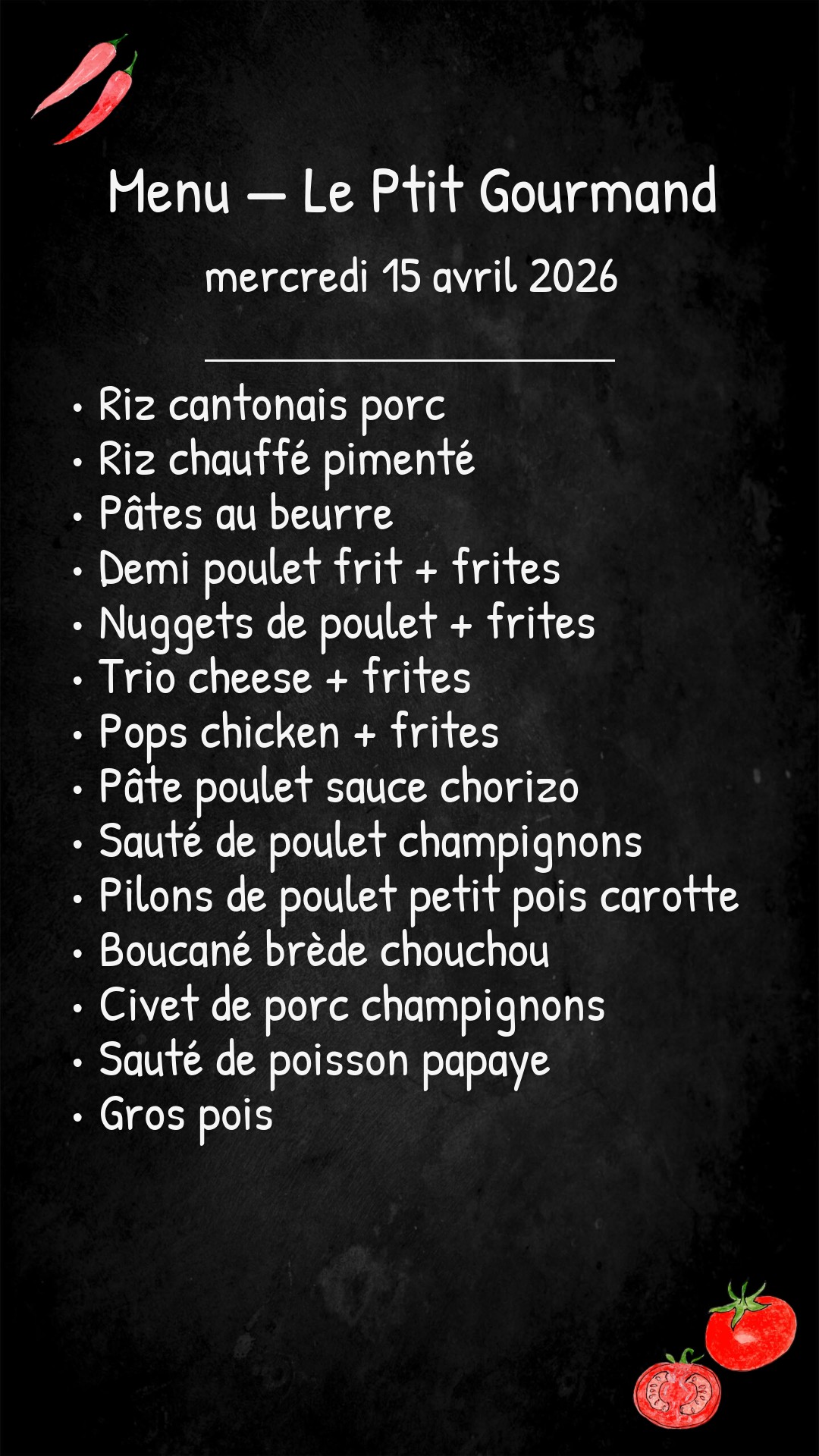 *Des modifications sont susceptibles d’être apportées au menu.