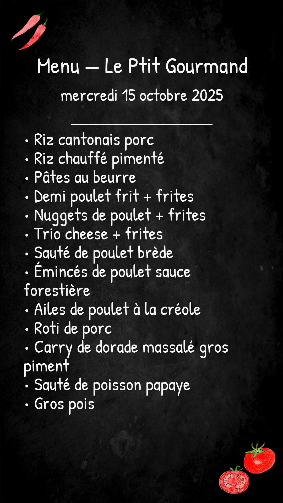 *Des modifications sont susceptibles d’être apportées au menu.