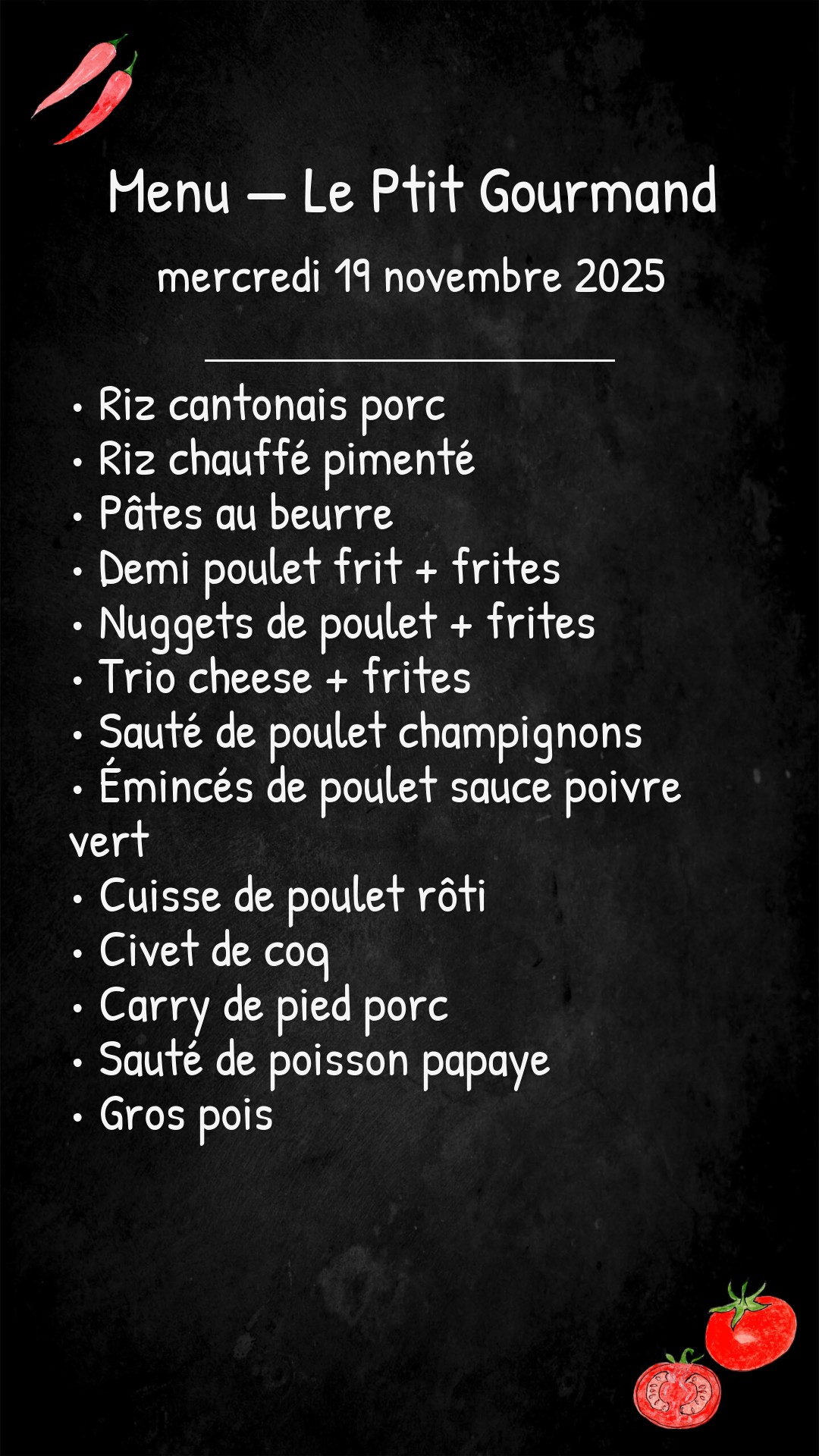 *Des modifications sont susceptibles d’être apportées au menu.