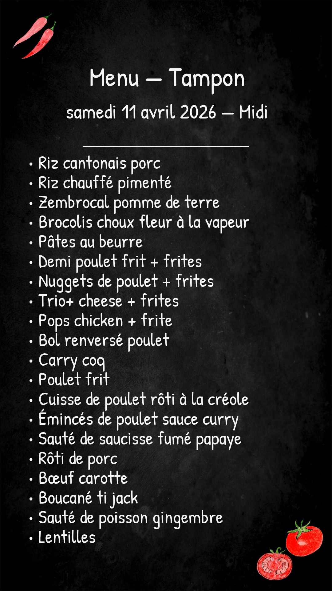 *Des modifications sont susceptibles d’être apportées au menu.