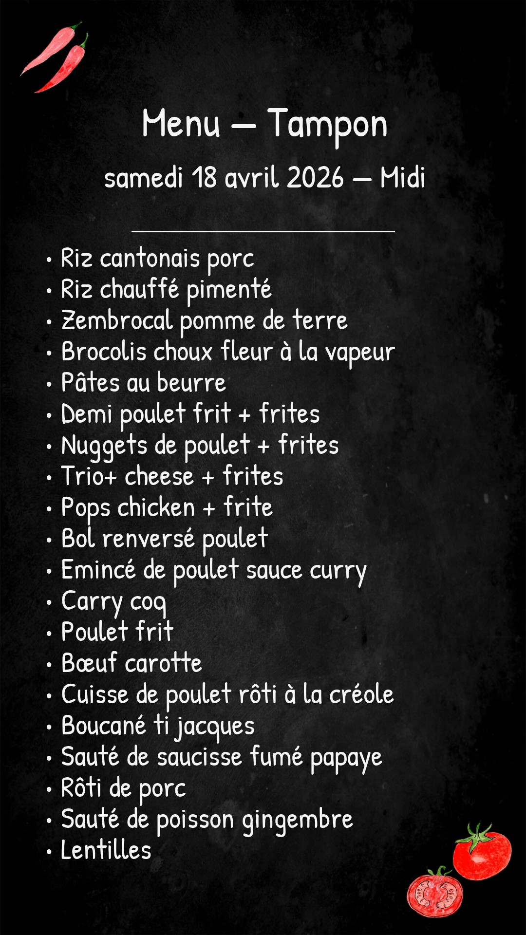 *Des modifications sont susceptibles d’être apportées au menu.
