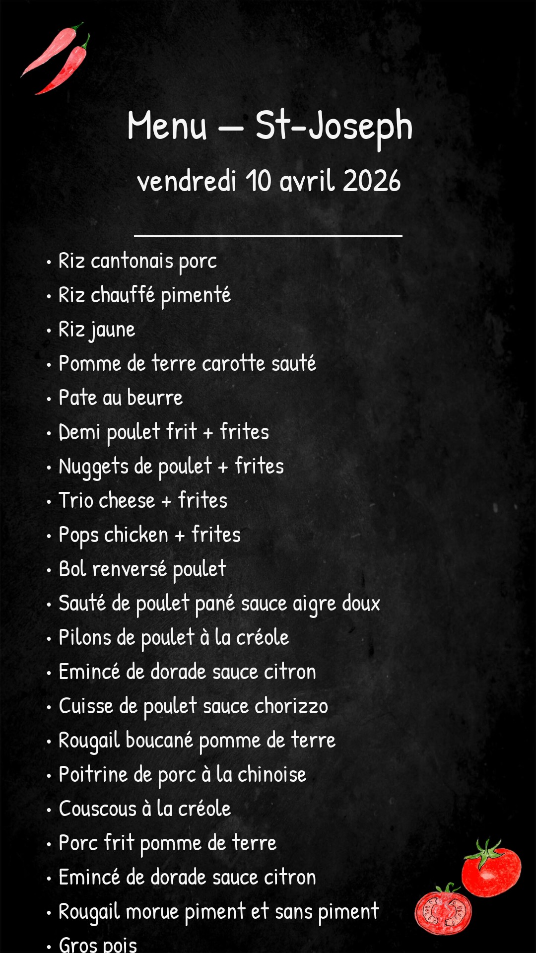 *Des modifications sont susceptibles d’être apportées au menu.