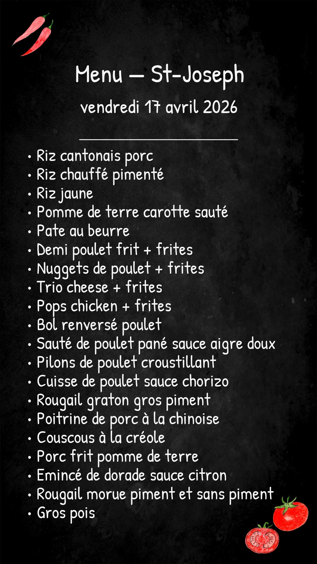 *Des modifications sont susceptibles d’être apportées au menu.