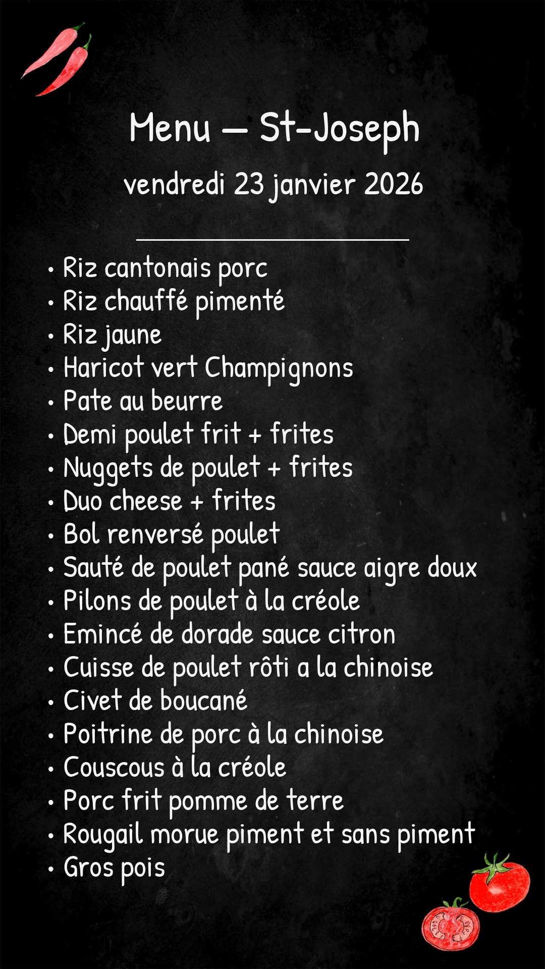 *Des modifications sont susceptibles d’être apportées au menu.