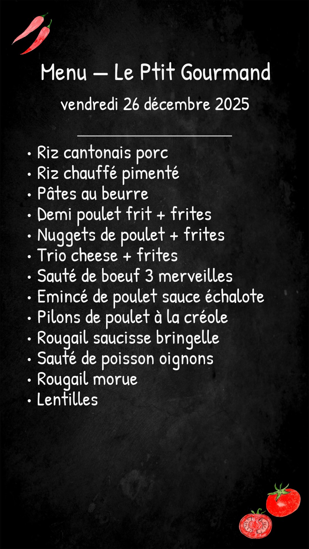 *Des modifications sont susceptibles d’être apportées au menu.